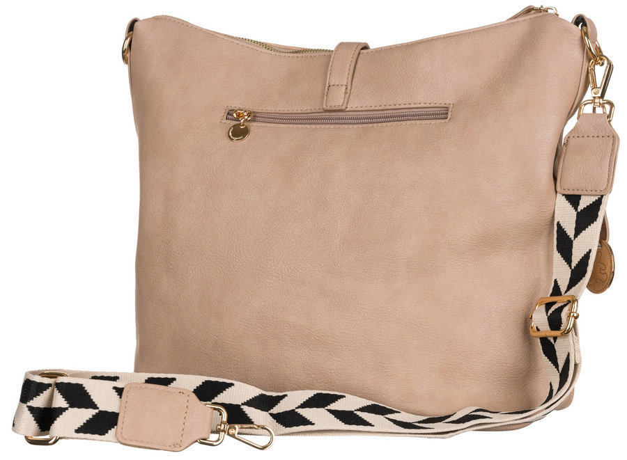 Listonoszka z doczepianym parcianym paskiem ze stylowym wzorem. Jego maksymalna długość to 116 cm. Pasek jest regulowany i pozwala na dostosowanie jego długości do Twojej sylwetki i wzrostu.