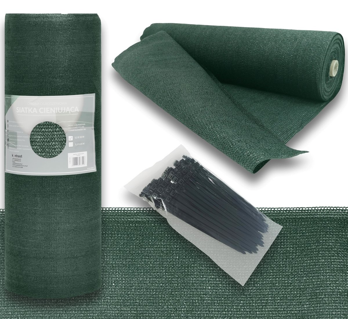 | Nazwa: | Siatka Cieniująca 90% Maskująca Na Płot 1,5X10M Zielona + Opaski |