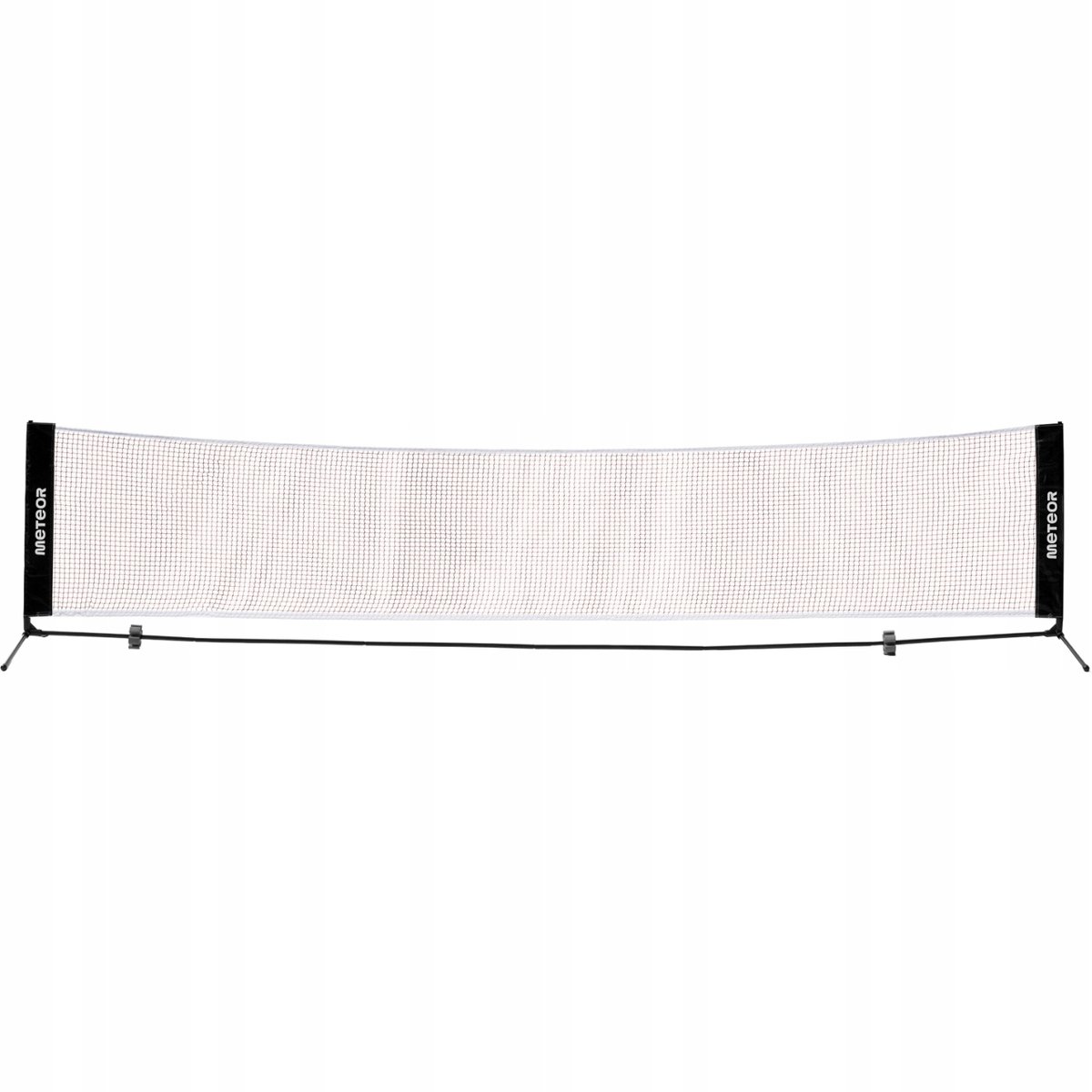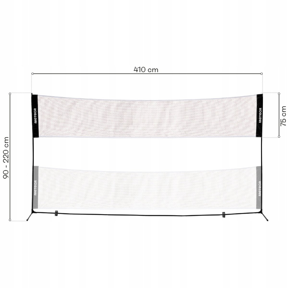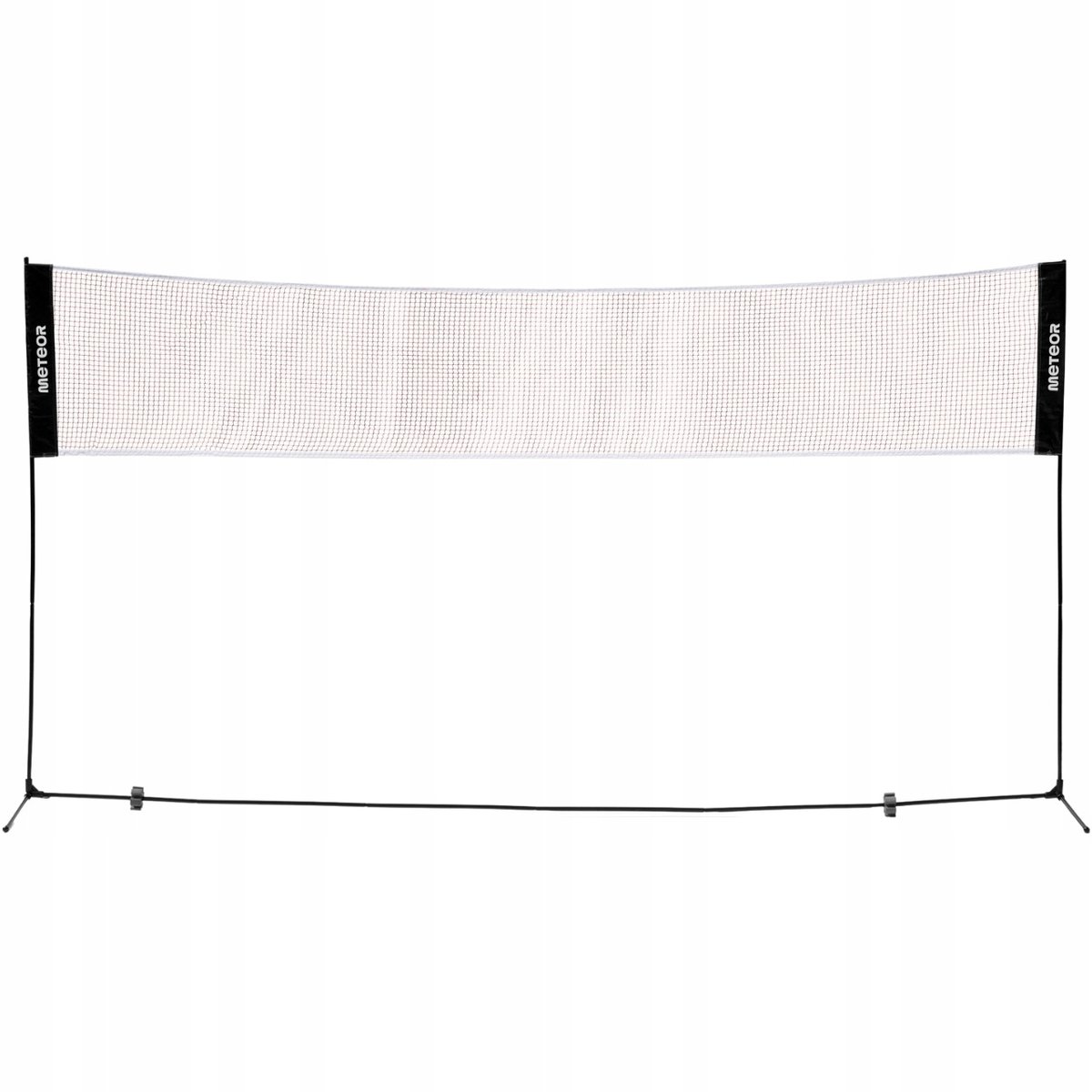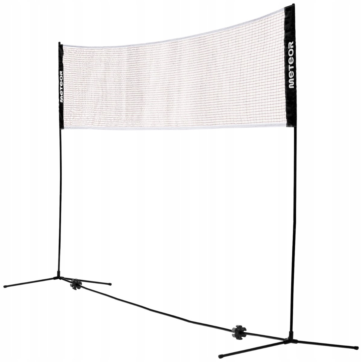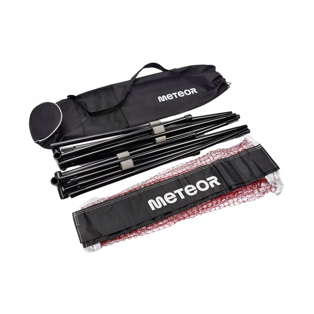 Siatka do badmintona, siatkówki lub tenisa Meteor pozwoli rozpocząć grę dorosłym, jak i dzieciom. Montaż przebiega szybko i bezproblemowo. Istnieje możliwość ustawienia siatki na kilku wysokościach. Siatka jest przeznaczona do gry w badmintona, ale dzięki regulacji wysokości jest możliwe rozegranie innych gier, np. tenisa czy siatkówki. Konstrukcja jest składana. Poszczególne części połączono elastycznymi, gumowymi linkami. Montaż nie wymaga użycia żadnych narzędzi. Siatka jest wolnostojąca, co oznacza, że nie trzeba montować jej do podłoża. Poliestrowa siatka oraz stalowe słupki, zapewniają odporność na niekorzystne warunki atmosferyczne i uszkodzenia. Antypoślizgowe nakładki umieszczone na końcach nóżek. Poprzeczka łącząca zewnętrzne słupki wzmacnia stabilność stelaż. Do zestawu został dołączony materiałowy pokrowiec.