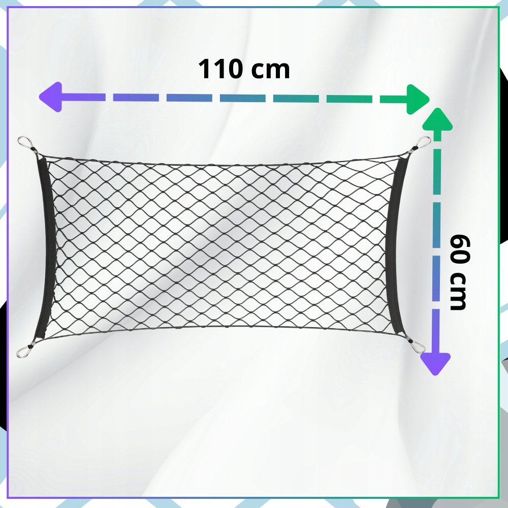 ✅ Wymiary 60 × 110 cm sprawiają, że siatka pasuje do większości samochodów osobowych, kombi i SUV-ów. Uniwersalna siatka do bagażnika samochodowego 60x110 idealnie sprawdzi się zarówno w codziennych dojazdach, jak i podczas długich podróży.