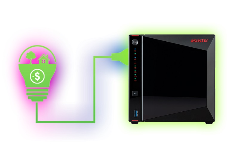 Produkty ASUSTOR NAS są projektowane i tworzone zgodnie z ideą produktów komputerowych przyjaznych dla środowiska oraz dla portfela samego użytkownika. Podczas normalnego użytkowania te urządzenia zużywają znacznie mniej energii niż przeciętny komputer stacjonarny lub serwer. Co więcej, zaawansowane funkcje kontroli zasilania pozwalają na bardziej wydajne zarządzanie urządzeniem NAS oraz dyskami twardymi, zamontowanymi wewnątrz serwera. To w efekcie jednocześnie obniża rachunki za energię elektryczną oraz wydłuża żywotność dysków twardych. Działając w trybie hibernacji (uśpienia) dysków nowy serwer NAS AS5304T zużywa jedynie 12.6W energii. Natomiast podczas swojego normalnego działania zapotrzebowanie na zasilanie nieznacznie wzrasta do 27W.