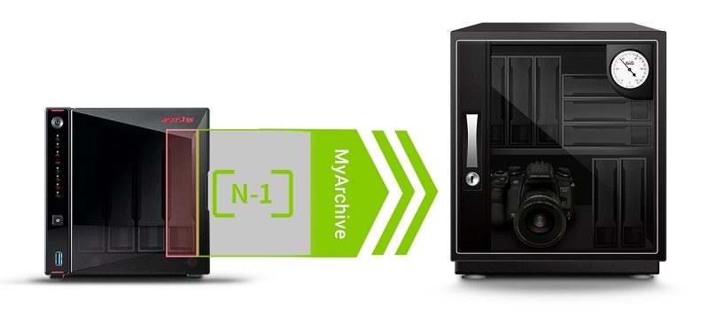 Zaawansowana technologia tworzenia kopii zapasowej ”Cold Backup” aplikacji MyArchive zamienia standardowe dyski twarde kompatybilne z serwerami NAS w mobilne archiwa pamięci masowej. Wystarczy tylko włożyć dysk twardy do serwera NAS w celu łatwego dostępu, tworzenia kopii zapasowych oraz udostępniania innym zawartości zainstalowanych pamięci masowych. Aplikacja obsługuje wyjmowanie i instalację nowych jednostek pamięci masowej ”na gorąco” - funkcja Hot Swap.