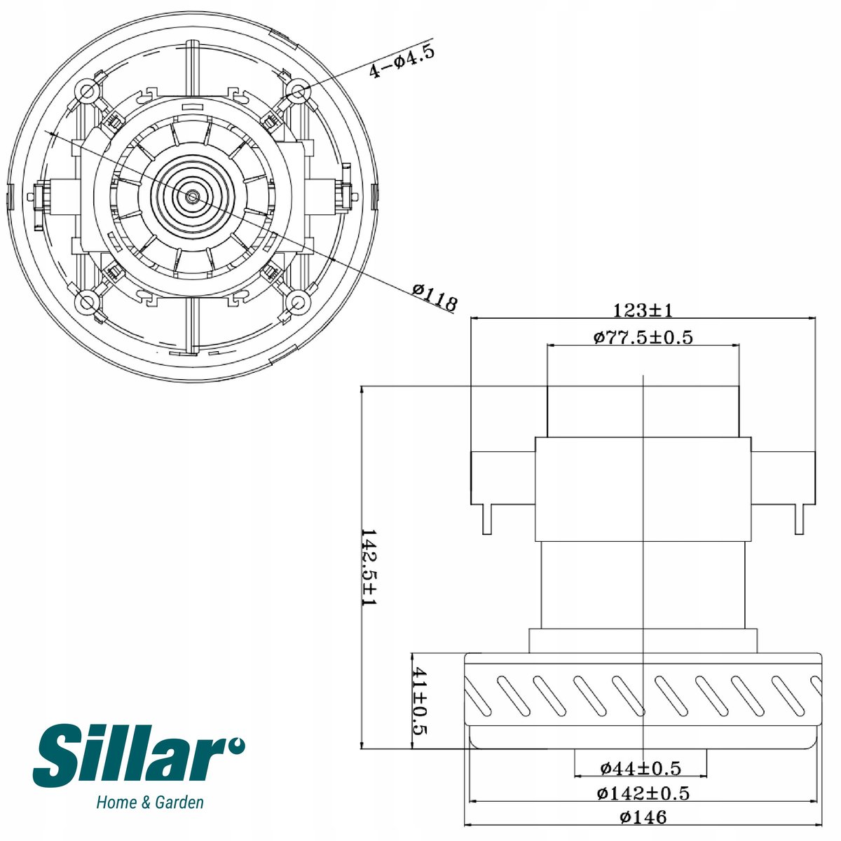 ✅ Szerokość (mierzona od szczotki do szczotki silnika): 123mm (+/- 1mm).