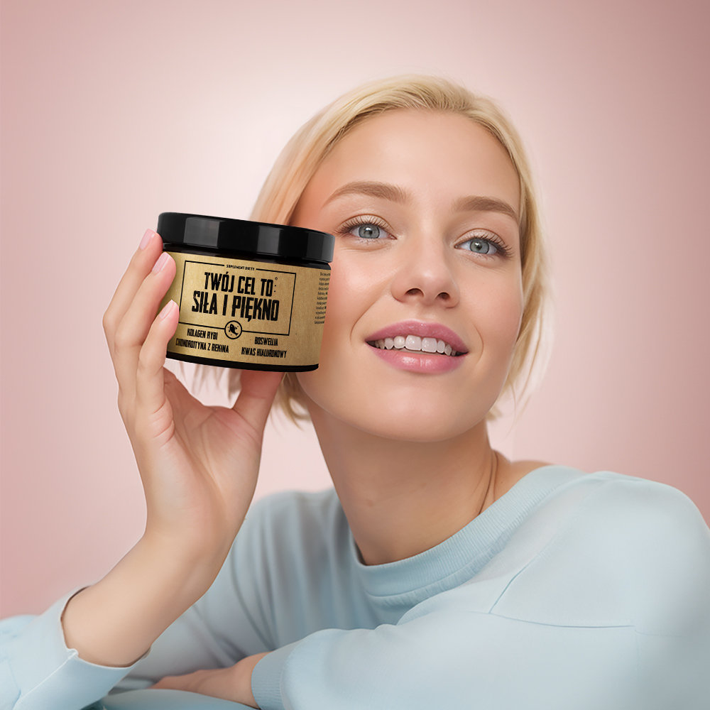 Kolagen od Twój Cel To wspiera również stawy. W produkcie znajdują się dodatkowe składniki o udokumentowanym wpływie na poprawę ruchliwości stawów. Znajdziesz w nim glukozaminę, siarczan chondroityny i kwasy bosweliowe.