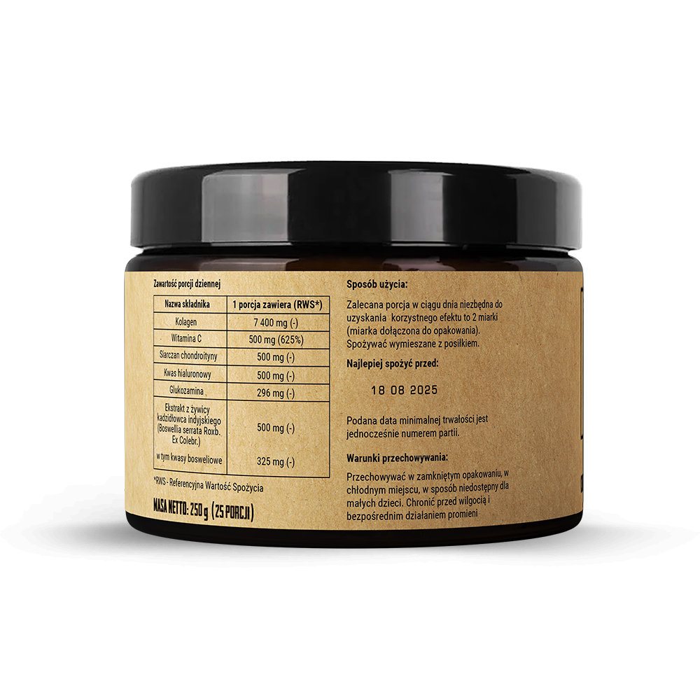 - Wysoka dawka kolagenu – 7 400 mg w jednej porcji
