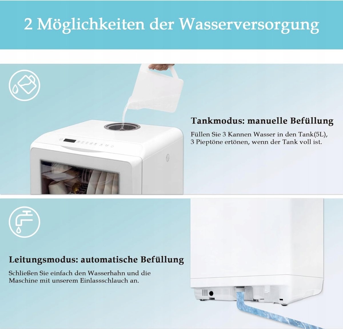 * Ta zmywarka jest łatwa w obsłudze, bez prac instalacyjnych, idealna dla rodzin, mieszkań i przyczep kempingowych.