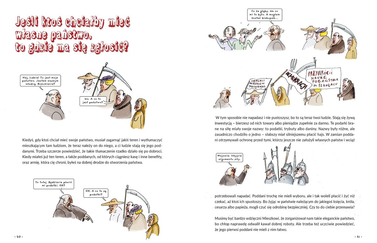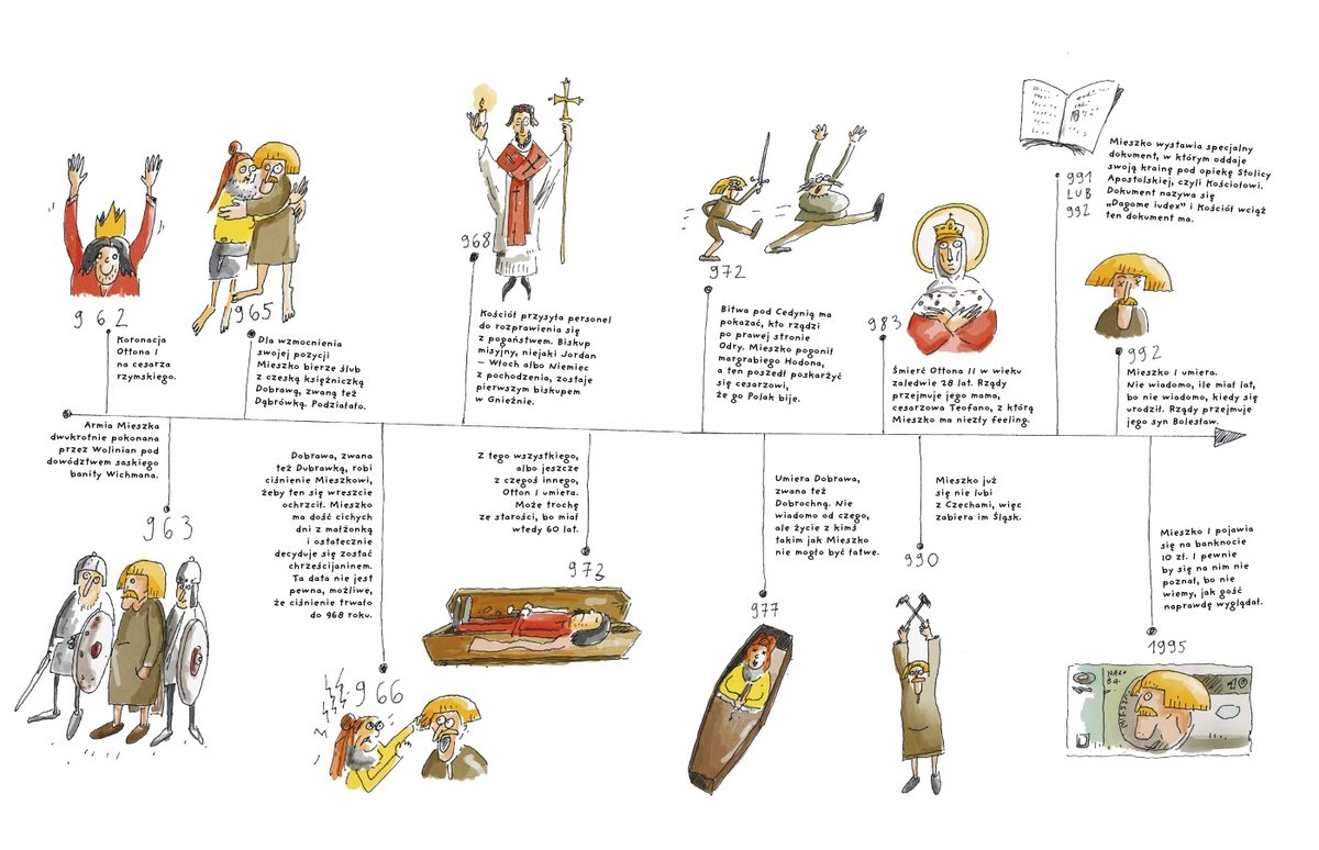 Skąd się wzięła Polska? Jak ochrzcić całe państwo? Komu Mieszko podarował żywego wielbłąda? Co się stało z wiarą naszych przodków? Czy anonimowym francuskim kronikarzom można wierzyć na słowo? I czy Popiel nie był aby dziadersem? Opowieści o początkach państwa Polskiego: dowcipnie, współcześnie i z pazurem. W dodatku w komiksowej formie!