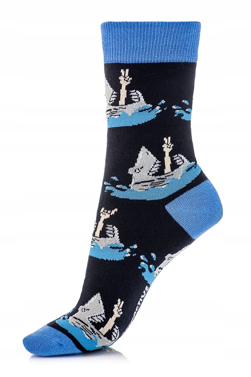 ATTRACTIVE GRANATOWE SKARPETKI DAMSKIE W REKINY Z NIEBIESKIMI WYKOŃCZENIAMI.Skarpetki damskie z wysokiej jakości bawełny czesanej. Różnorodne kolory i ciekawe wzory.Płaski szew na