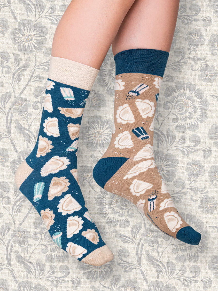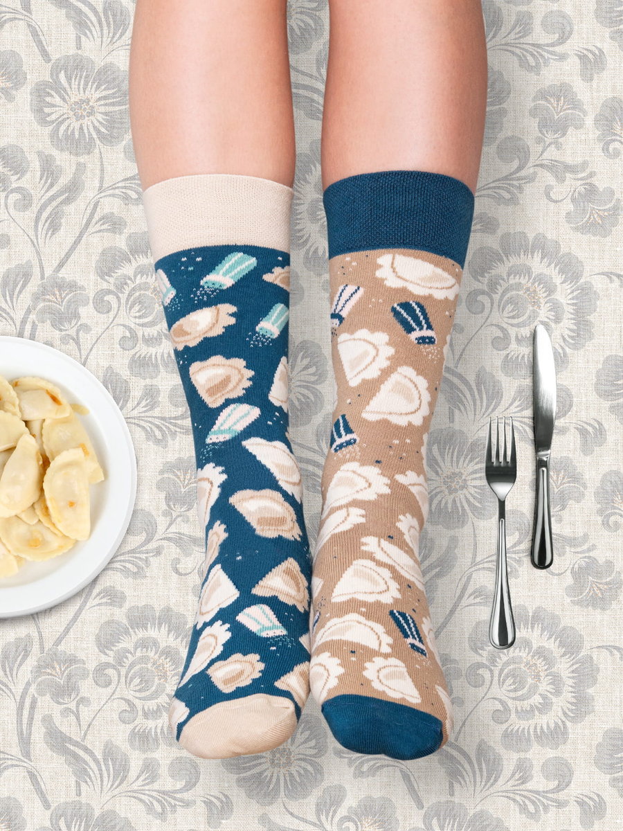 PIEROGI, czyli słowiańska ambrozja i największy dar Polaków dla ludzkości, od teraz na naszych stylowych skarpetkach! Ruskie, z kapustą, a może z jagodami? Niezależnie od tego, które lubisz najbardziej, pozwól im stać się elementem Twojej stylizacji!