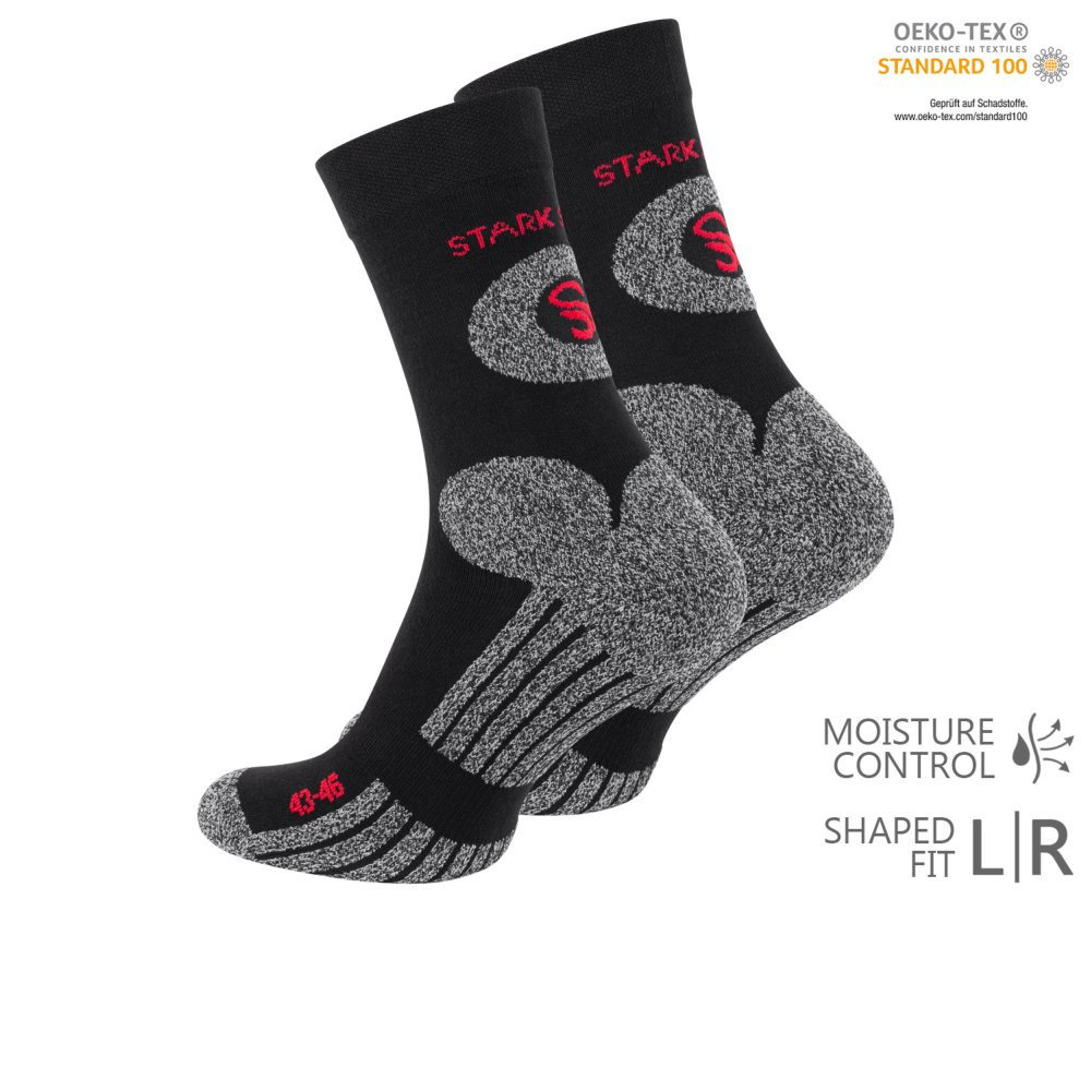Skarpety trekkingowe i outdoorowe Stark Soul® z podeszwą Air-Channel Niemiecki certyfikat Oeko-Tex Standard 100 - bez barwników AZO Cechy produktu:• specjalna mieszanka trekkingowa• Ochronna wyściółka w obszarze pięty, palców, kostki i podeszwy• podeszwa z kanałem powietrznym zapewnia jeszcze lepszą cyrkulację powietrza pod stopą• płaski i miękki szew na palcach• Doskonała kontrola klimatu, tłumienie nieprzyjemnych zapachów i doskonałe odprowadzanie wilgoci dzięki pomysłowej mieszance materiałów bawełna• szybkoschnąca• Idealne dopasowanie bez zmarszczek dzięki zawartości elastanu• Wzmocniona podeszwa dla większego komfortu i trwałości• Anatomicznie ukształtowana wkładka (oznaczona jako L i R) dla lepszego dopasowania• Logo Stark Soul nad piętą i napis na cholewce• dzianinowy rozmiar dla lepszego sortowania• Specjalnie opracowane skarpety na długie wędrówki, ale także idealna do wszystkich innych aktywności sportowych