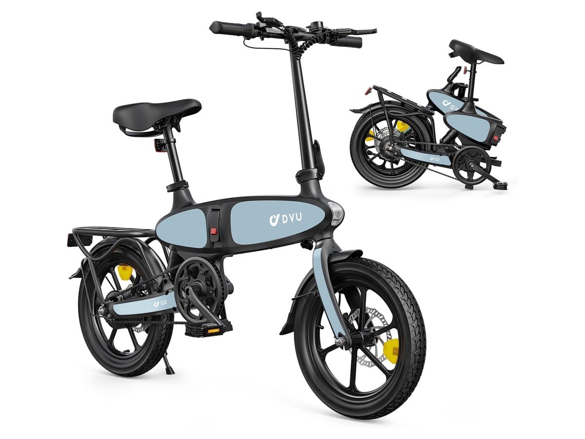 Bezpieczny i wygodny: Rower elektryczny DYU C2 wyposażony jest w 16-calowe opony, 7-calowe o dużej pojemności akumulator 0,5 Ah i super silnik. Podwójne hamulce tarczowe na przednich i tylnych kołach znacząco poprawiają bezpieczeństwo. Rowery elektryczne są wyposażone w przednie i tylne dzwonki oraz światła, aby zapewnić bezpieczeństwo podczas nocnych podróży.