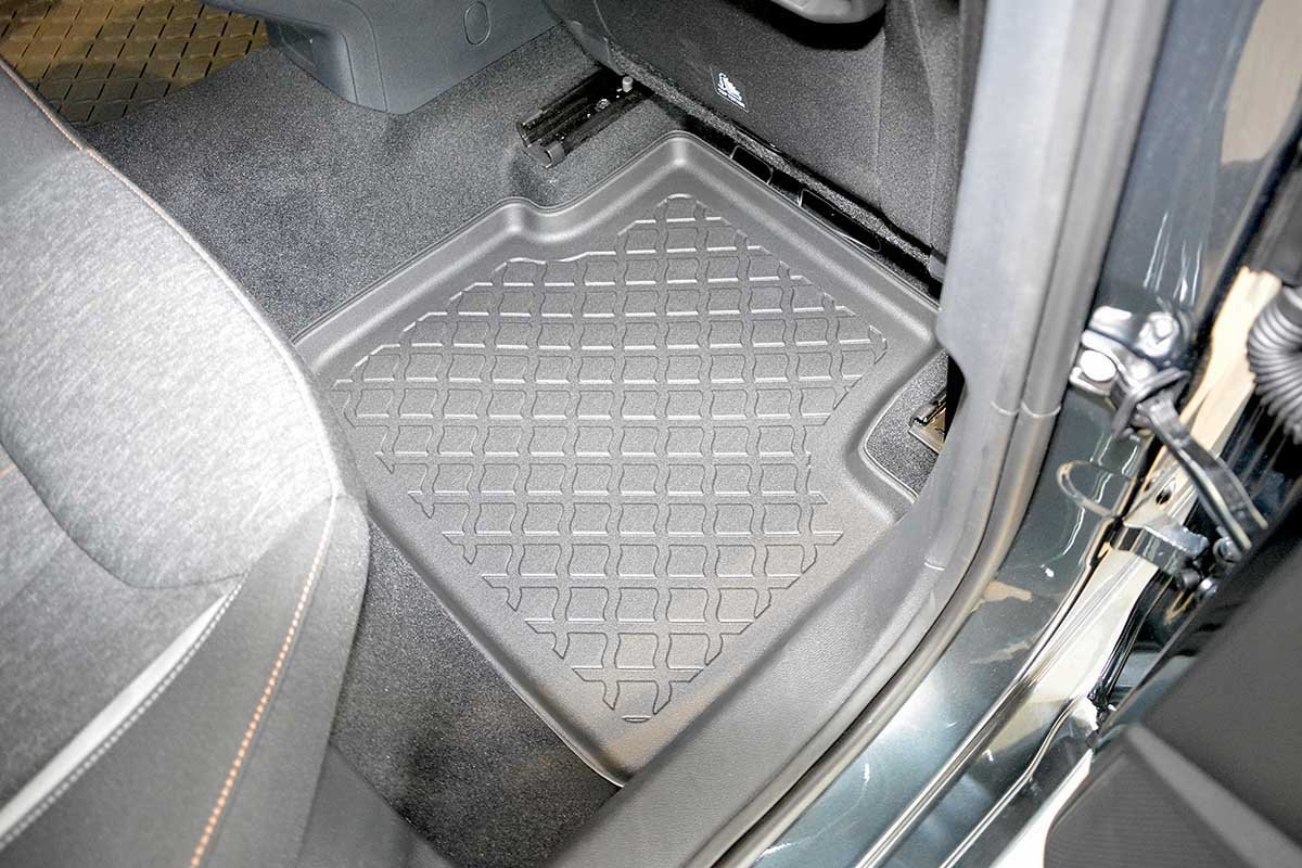 Oferowane dywaniki zostały precyzyjnie zaprojektowane do kształtu płyty podłogowej biorąc pod uwagę nie tylko markę / model samochodu, ale także rocznik oraz wersję nadwozia, dzięki czemu pasują idealnie. Dywaniki wytwarzane są z najwyższej jakości, trwałego i wzmocnionego tworzywa sztucznego, niezawierającego substancji szkodliwych dla zdrowia, co zapewnia bezpieczeństwo użytkowania. Wysoki kołnierz (brzeg) ochronny dookoła dywaników oraz stabilność kształtu skutecznie zatrzymuje wodę i brud, zabezpieczając oryginalną tapicerkę samochodową przed zabrudzeniem. Bezpieczne w użytkowaniu, dzięki praktycznemu i łatwemu w użyciu systemowi mocowania do podłogi samochodu. System mocowania dostosowany jest do marki / modelu samochodu i zabezpiecza dywanik przed przesuwaniem podczas jazdy. Matowe wykończenie oraz dopracowany wzór na powierzchni zapewniają estetyczny wygląd dywaników w samochodzie.
