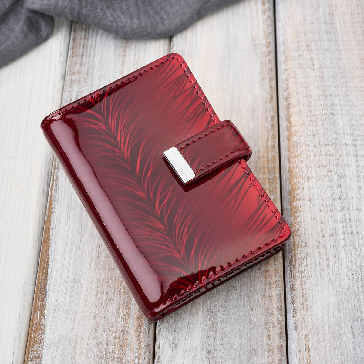 Model SP-15-RRD to kwintesencja elegancji zamknięta w kompaktowej formie. Wykonane z wysokiej jakości naturalnej skóry lakierowanej, etui przyciąga wzrok wyrazistym czerwonym kolorem oraz subtelnym motywem roślinnym, który wyłania się spod połyskującej tafli lakieru. To detal, który nadaje akcesorium unikalnego stylu, czyniąc je idealnym dodatkiem zarówno na co dzień, jak i na bardziej formalne okazje.