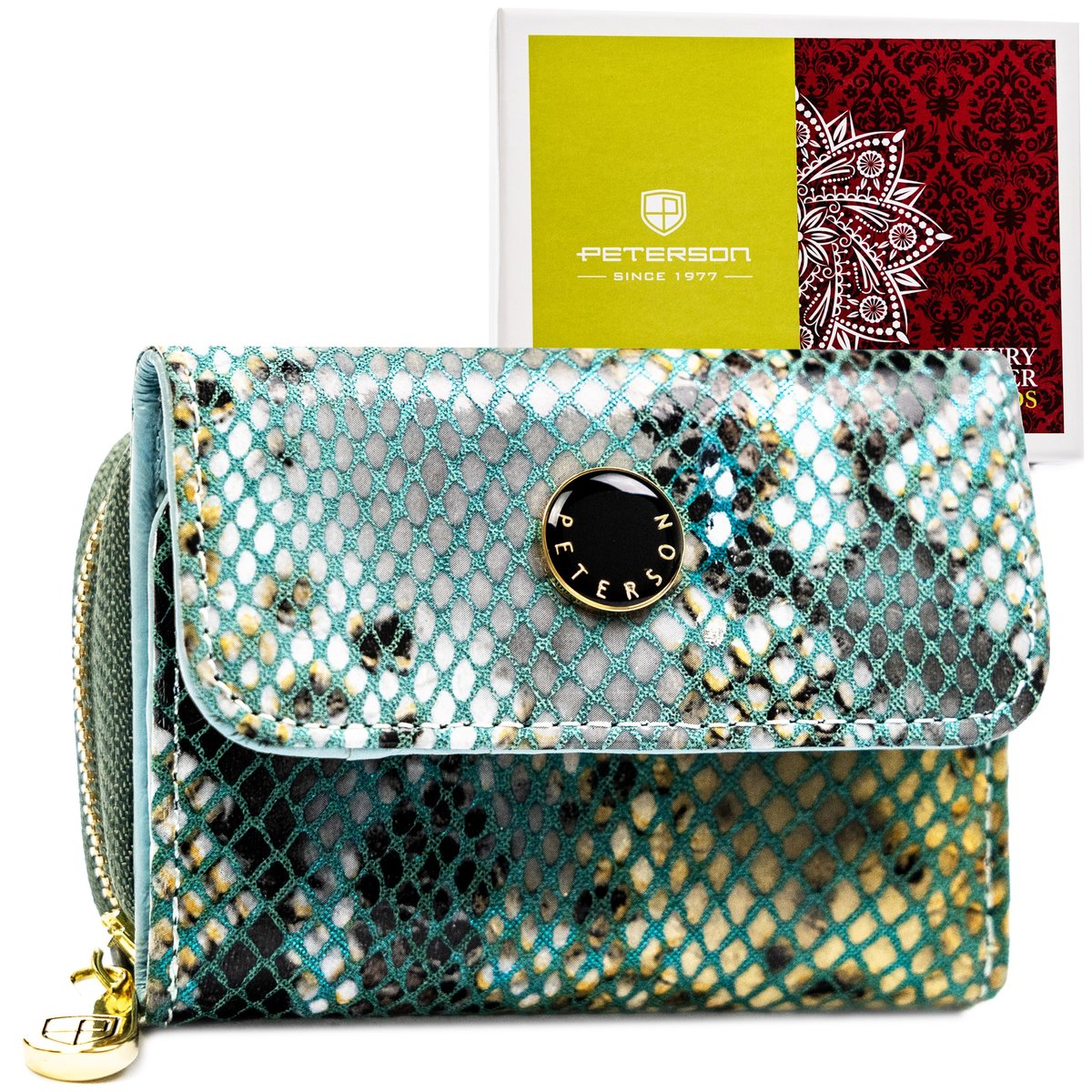 Galanteria marki Peterson® cieszy się ogromną popularnością. Każdy produkt projektowany jest zgodnie z aktualnie obowiązującymi trendami, nawiązując do oryginalnej i ponadczasowej stylistyki. Bogactwo kolorów i wzorów, jak również wysoka jakość wykonania to cechy, które charakteryzują markę.