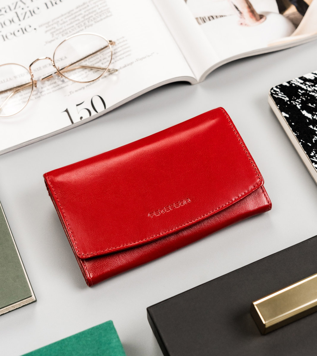 #️⃣ Klasyczny fason w czerwonym kolorze | Portfel o ponadczasowej stylistyce w zmysłowym, czerwonym kolorze. Model w orientacji poziomej zapinany na trwały i solidny zatrzask