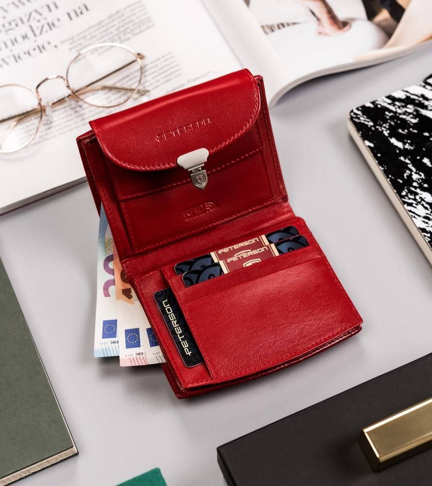 Właśnie zrecenzowałem Peterson, Skórzany portfel damski na zatrzask z systemem RFID, czerwony