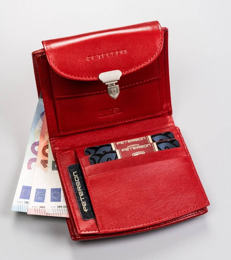 | Nazwa: | Peterson, Skórzany portfel damski na zatrzask z systemem RFID, czerwony |