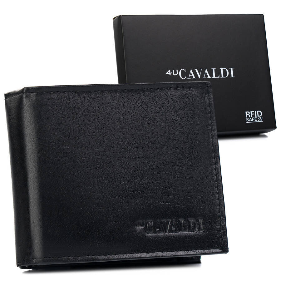 Skórzany portfel męski z kieszonką na rewersie — Cavaldi Produkt polskiej marki, której zaufało tysiące naszych Klientów! Jakość i precyzja wykonania | Odszyty z naturalnej skóry w czarnym kolorze, ...