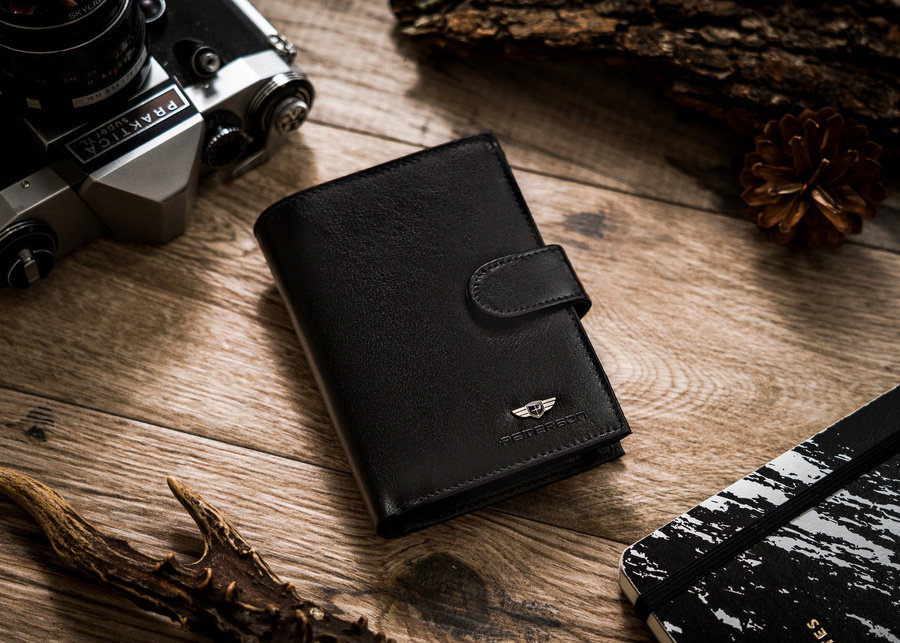 #️⃣ Klasyczna czerń zawsze w modzie | Portfel o klasycznej stylistyce. Model w orientacji pionowej z zapięciem zewnętrzny.