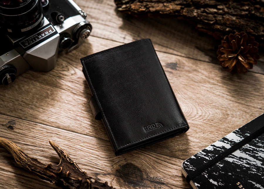 Portfel wyposażony w specjalną podszewkę z RFID BLOCKING SYSTEM (Radio-Frequency IDentification), która zabezpiecza karty zbliżeniowe, dokumenty biometryczne, legitymacje i karty komunikacji miejskiej przed nieautoryzowanym odczytem danych. Technologia uniemożliwia odczyt danych za pomocą specjalnych czytników wykorzystywanych do kradzieży danych.