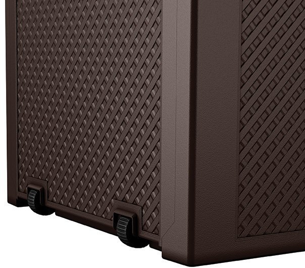 Prostota formy oraz łatwy i szybki montaż to główne atuty uniwersalnej skrzyni Emily 280L. Skrzynia przeznaczona jest do przechowywania różnorodnych narzędzi i akcesoriów ogrodowych, poduszek oraz zabawek dziecięcych. Nowoczesna stylistyka i klasyczna kolorystyka umożliwiają dopasowanie skrzyni do każdego wystroju ogrodu. Świetnie komponuje się z zestawami meblowymi Linii Emily. Jest to także idealne rozwiązanie na taras czy patio.