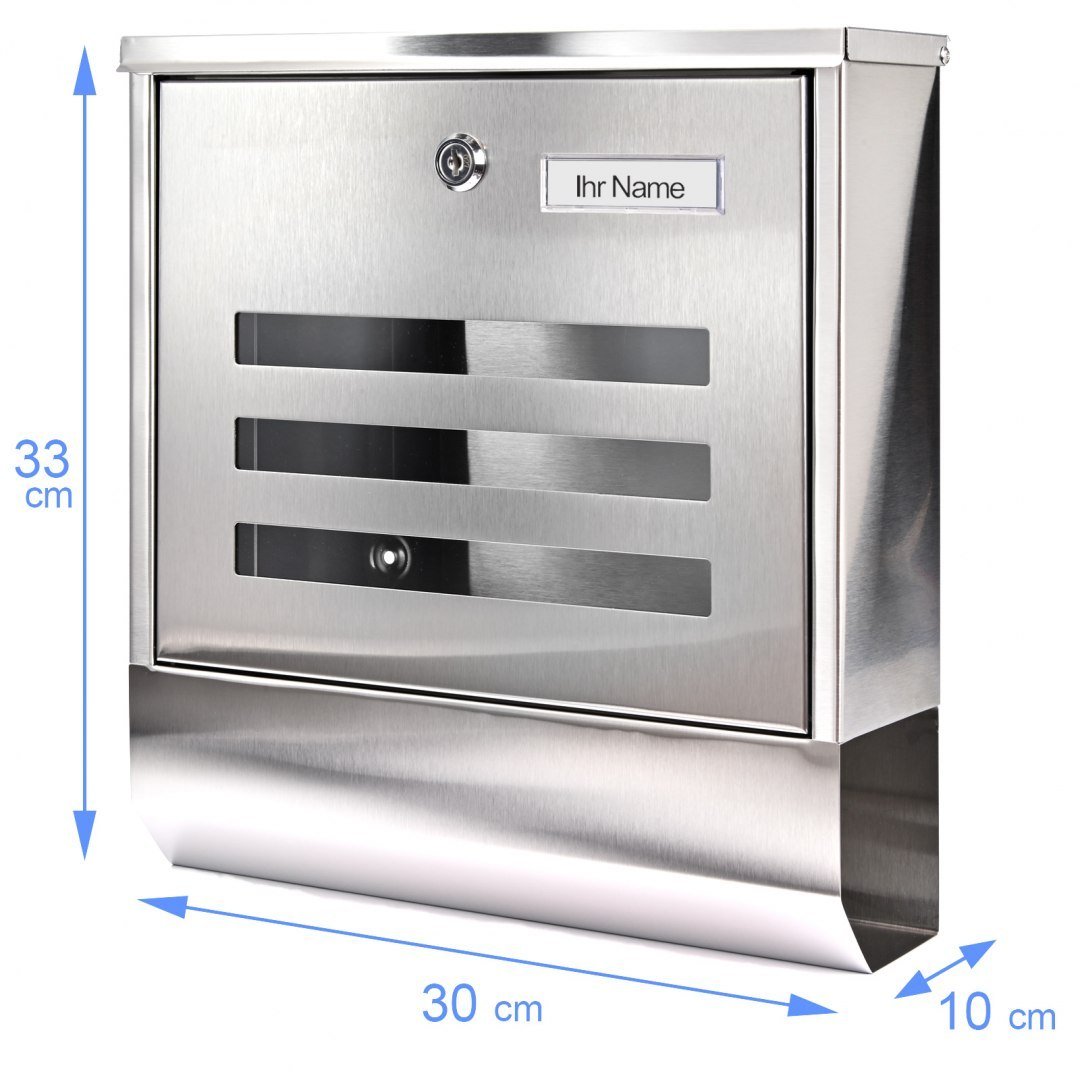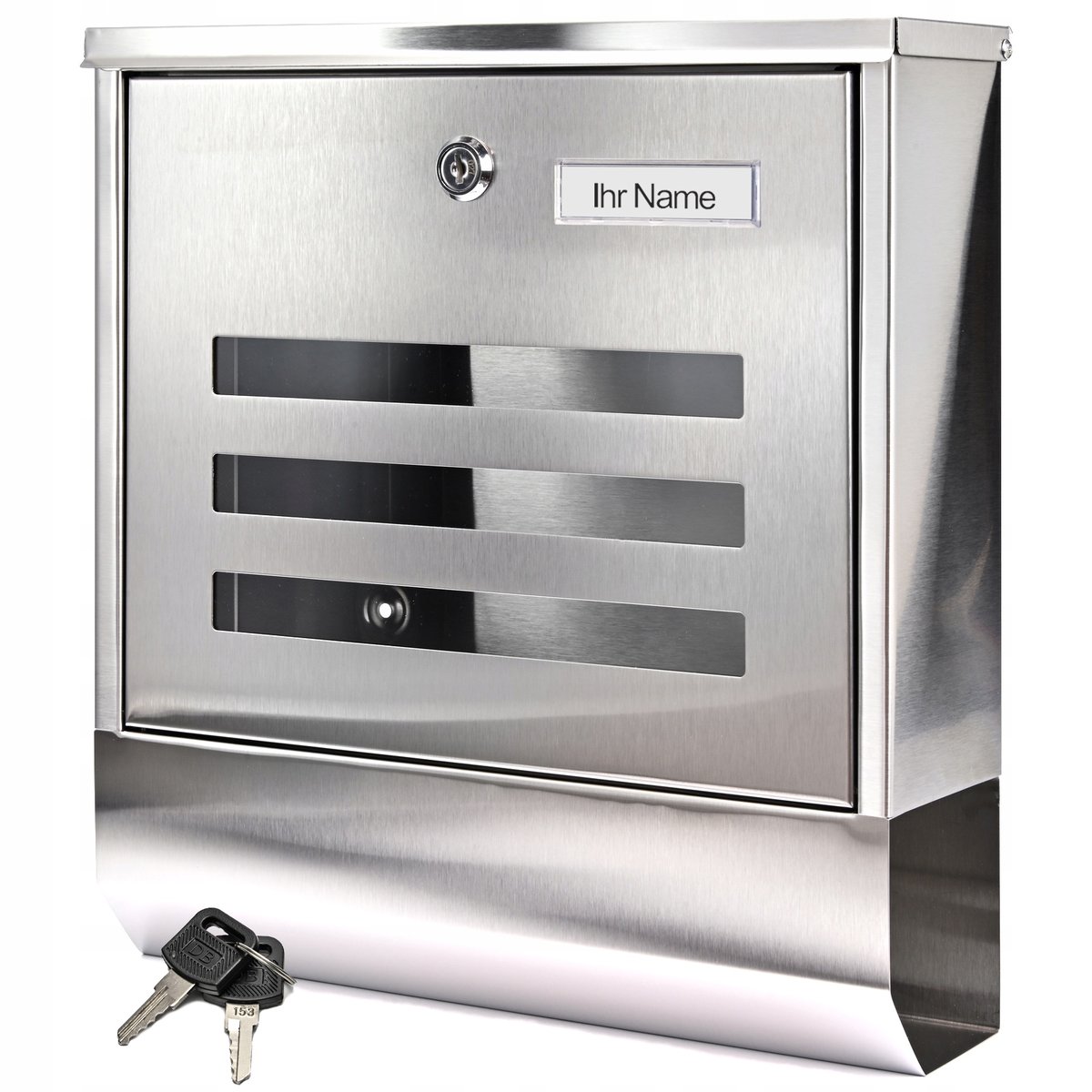 Wysokiej jakości, wykonana ze stali szlachetnej skrzynka na listy z dodatkowym pojemnikiem na gazety.