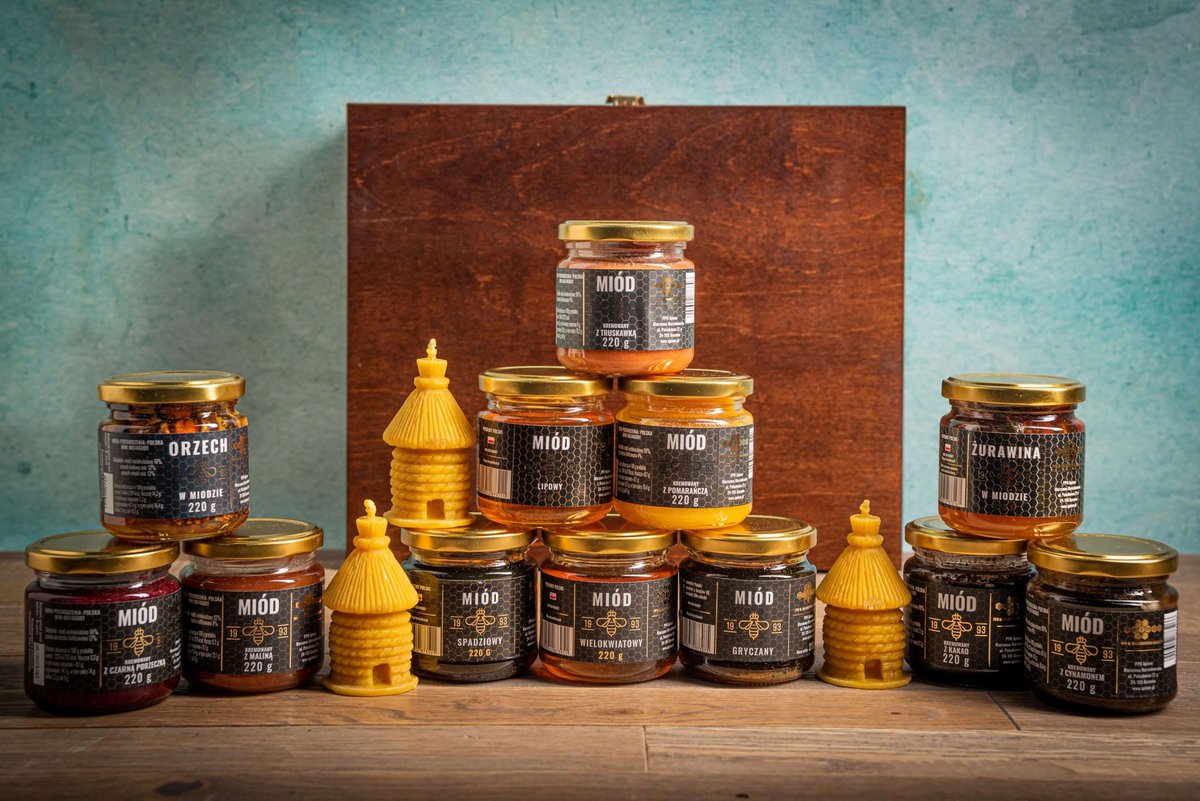 Właśnie zrecenzowałem Skrzynka Prezentowa, Zestaw Miodów Polskich 12 Sztuk Oraz Świece Z Wosku Pszczelgo