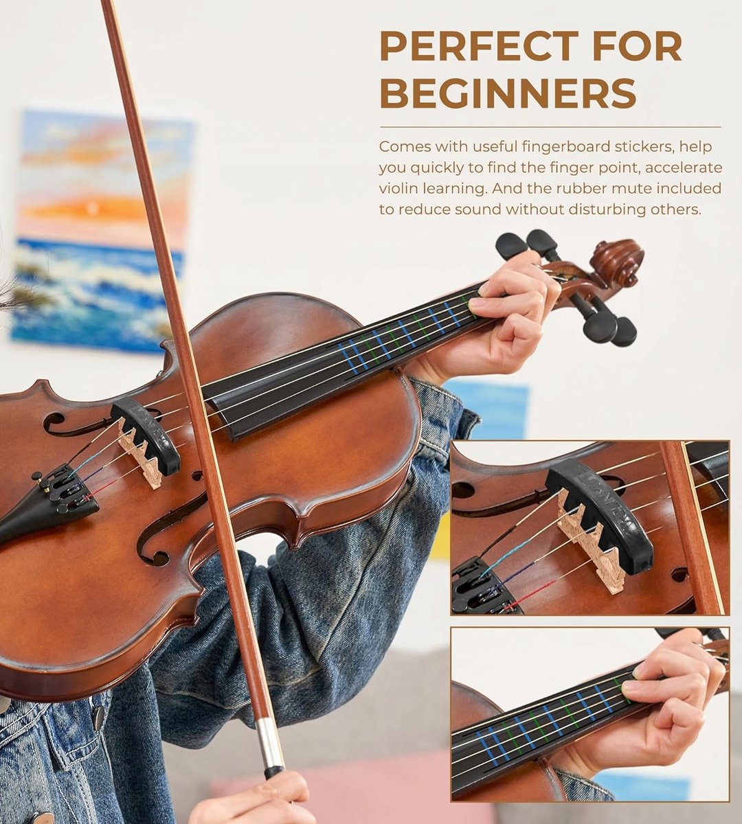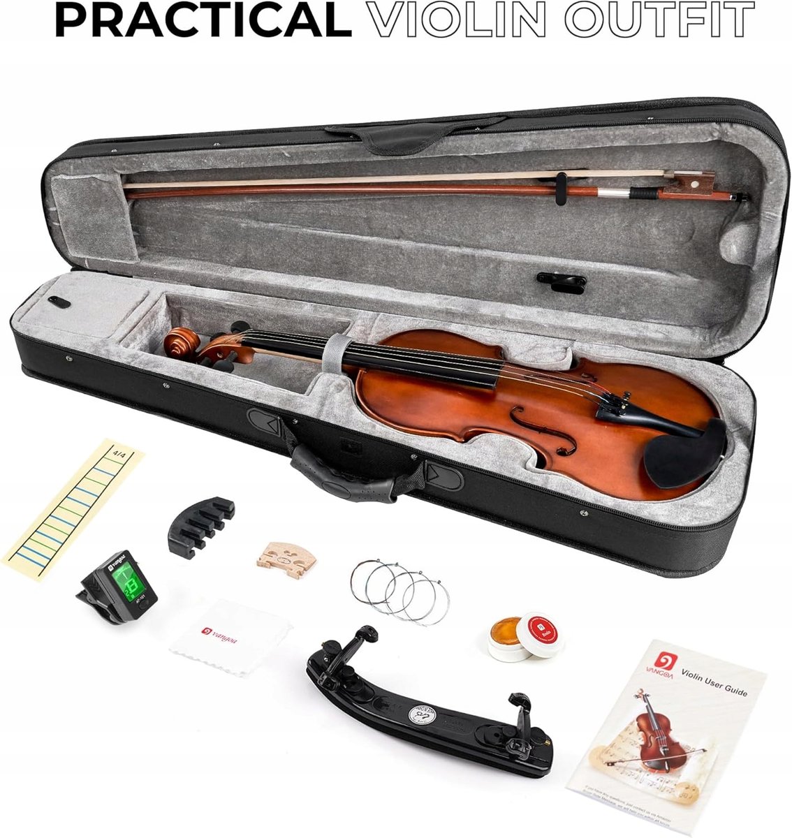 Vangoa 4/4 pełnowymiarowy zestaw skrzypiec akustycznych dla dorosłych początkujących uczniów z futerałem na skrzypce, smyczkiem, kalafonią, oparciem na ramię, tunerem, strunami.
