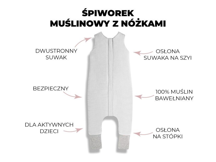 Kupując muślinowy śpiworek z nogawkami masz pewność, że: