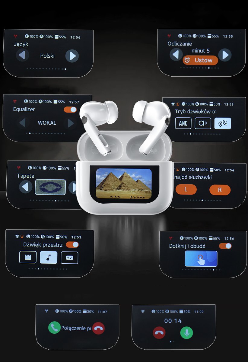 Wysoka jakość dźwięku | Długi czas na jednym ładowaniu | Komfortowe | Aktywna redukcja szumów ANC | Dotykowy ekran | Menu w języku POLSKIM | Bluetooth 5.4 |