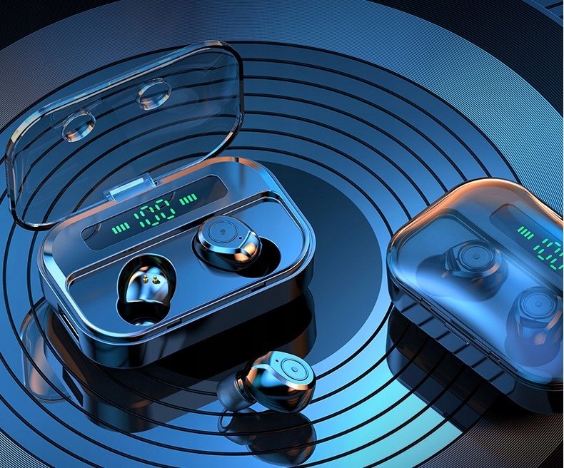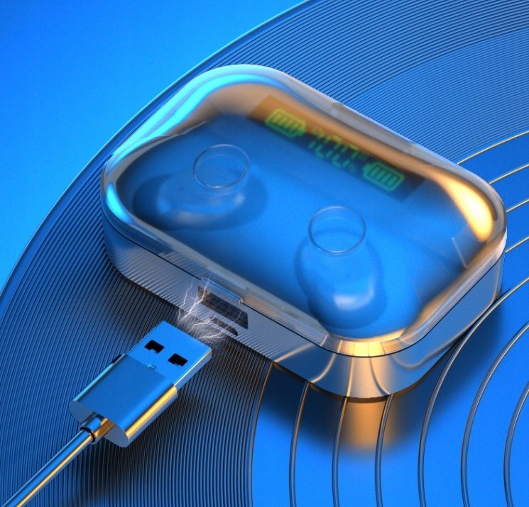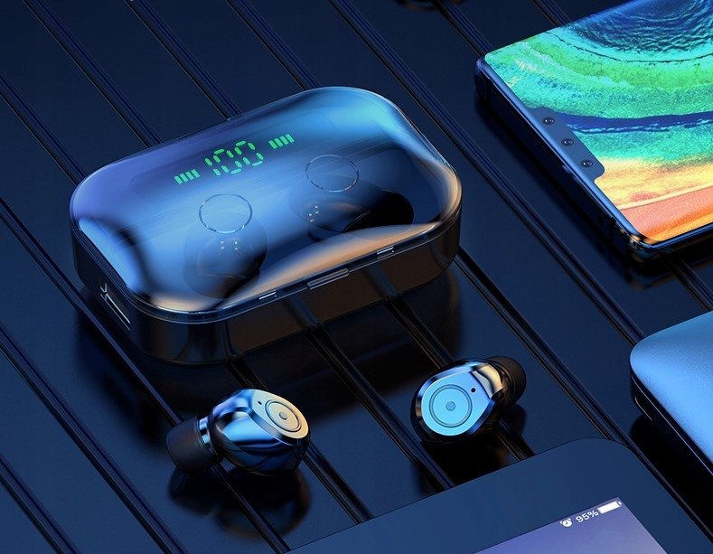 Etui słuchawek posiada powerbank z czytelnym wyświetlaczem, który informuje nas jaki jest stan naładowania powerbanku.