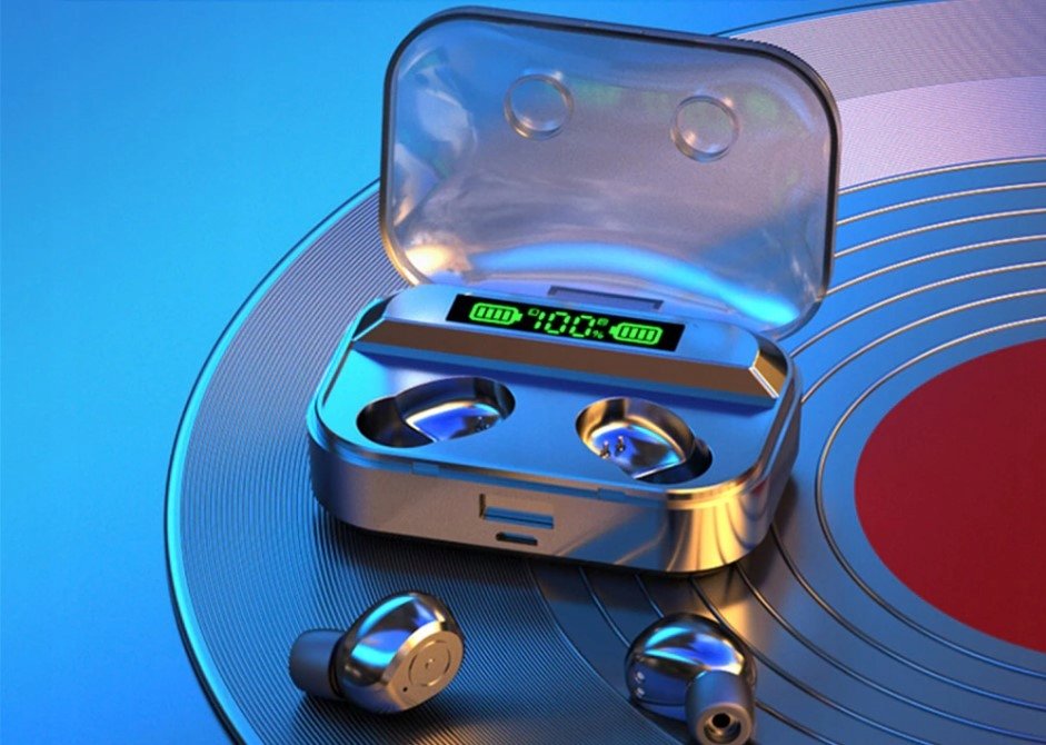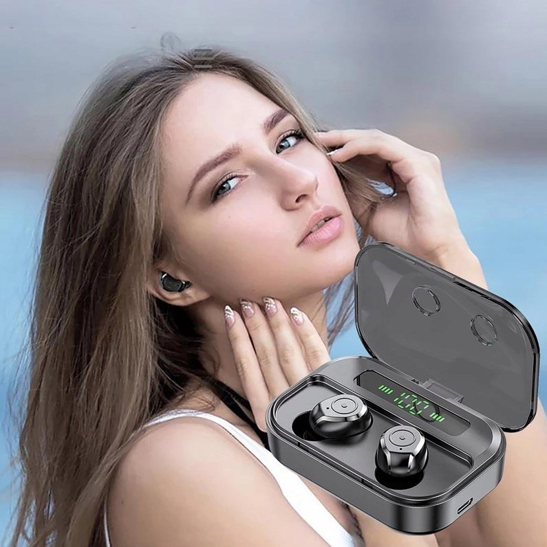 Słuchawki bezprzewodowe TG01 douszne czarne ✔ Mocny bas ✔ Wodoodporność ✔ Wysoka jakość dźwięku ✔ Długa pracy na baterii ✔ Etui z pojemnym powerbankiem ✔ Wbudowany wyświetlacz pokazujący procent ...