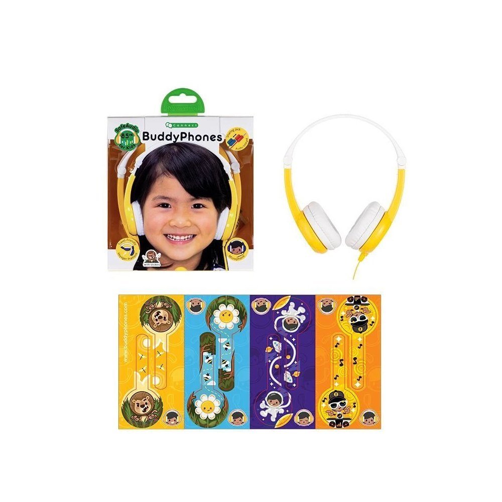 Słuchawki dziecięce BuddyPhones z linii Connect to wyjątkowo trwały produkt z elastycznym, składanym i jednocześnie giętkim pałąkiem, dzięki czemu idealnie nadaje się do różnych rozmiarów głów dzieciaków. Wyposażone zostały w bezpieczny, nie plączący się przewód, elastyczną konstrukcję oraz niestandardowe naklejki do samodzielnej dekoracji – wszystko to sprawia, że są to słuchawki idealne dla małego poszukiwacza przygód.