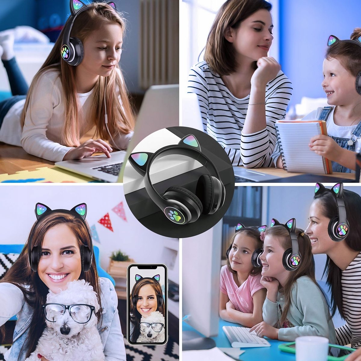 Wygodne, bezprzewodowe słuchawki nauszne dla dzieci. Charakterystyczne kocie uszy z podświetleniem LED pozwolą Twojemu dziecku wyróżnić się z otoczenia. Wykorzystanie szybkiego modułu Bluetooth 5.0 umożliwia wygodne korzystanie z urządzenia (zasięg do nawet 10 metrów). Zasilane z pomocą wbudowanego akumulatora. To świetny i bardzo praktyczny gadżet dla osób aktywnych oraz wszystkich tych którzy cenią sobie wygodę użytkowania sprzętu.