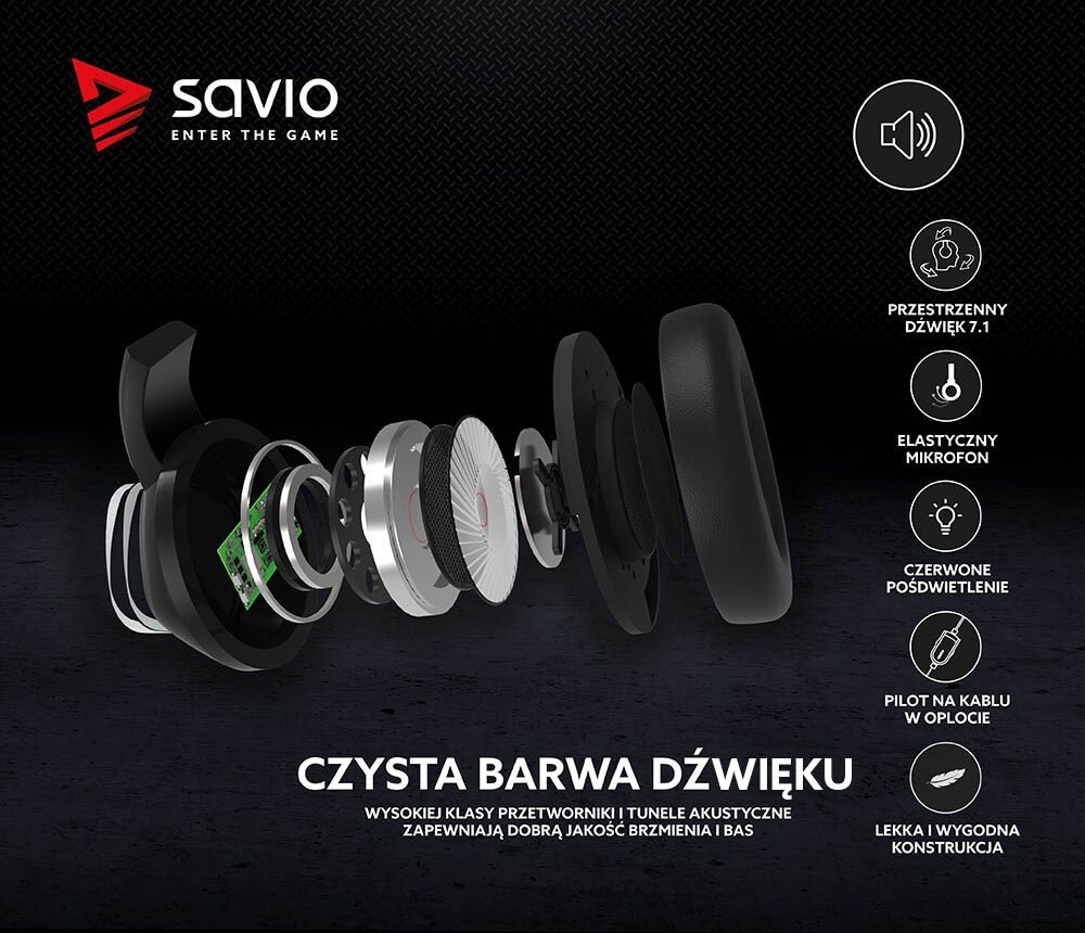 Właśnie zrecenzowałem Słuchawki z mikrofonem SAVIO VERTIGO 7.1 Gaming USB Czarno-czerwone