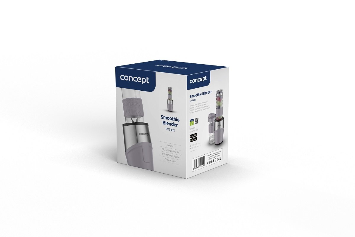 Blender do smoothie Concept SM3483 jest przeznaczony do szybkiego przygotowania Twoich ulubionych napojów. Posiada dwa kubki do mieszania, z których można od razu pić. Wszystko, co musisz zrobić, to wymienić nakładkę miksującą na pokrywkę Pokrywka wyposażona jest w pętelkę i specjalną podwójną uszczelkę, dzięki czemu masz pewność, że napój się nie wyleje. Idealnie pasuje również do uchwytu na napoje w samochodzie.