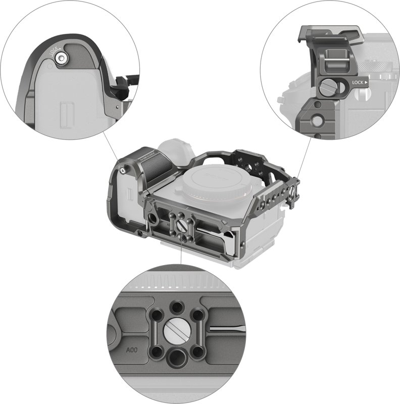 Zaprojektowany, aby usprawnić fotografowanie z ręki, zapewniając lepszą przenośność i rozszerzenie akcesoriów. Zestaw zawiera klatkę, zacisk kabla USB-C i HDMI oraz wygodny górny uchwyt do wygodnego przenoszenia kamery i wykonywania zdjęć pod niskim kątem.