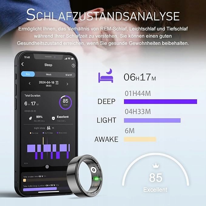 Ten inteligentny pierścień to idealne połączenie technologii i stylu, które pozwala na łatwe śledzenie zdrowia i aktywności fizycznej bez konieczności noszenia dużych urządzeń. Jego lekka konstrukcja, precyzyjne pomiary i elegancki wygląd czyną go doskonałym wyborem dla każdego, kto chce śledzić swoje zdrowie i kondycję z najwyższą dokładnością.