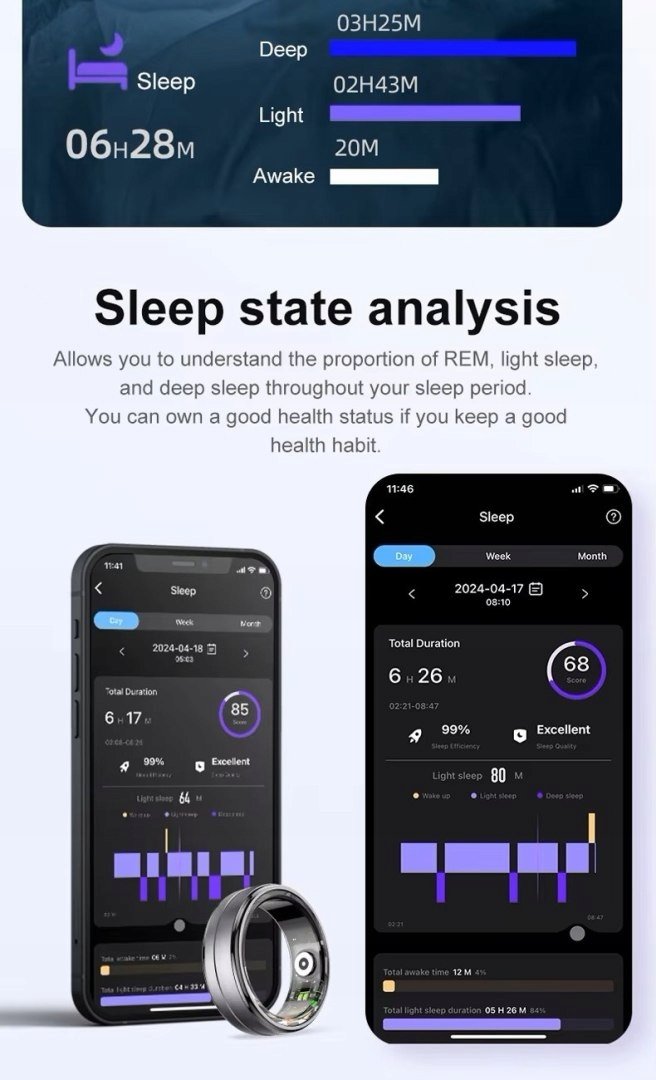 Dzięki zaawansowanym biosensorom precyzyjnie śledzi Twoje nocne cykle, analizując ruchy, fazy snu i ich jakość. Każdego poranka czeka na Ciebie szczegółowy raport - jak głęboko spałeś, kiedy Twój mózg śnił w fazie REM, a kiedy odpoczywał w stanie lekkiego snu. Blaupunkt Ring nie tylko mierzy - on uczy się Ciebie, wspierając budowanie lepszych, zdrowszych nawyków.
