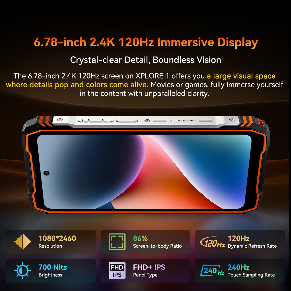 Blackview Xplore1 5G Outdoor Smartphone (20000mAh) Android 15, AI Outdoor Handy, 36+256GB/2TB, 6,78" 2,4K 120Hz/64MP+50MP+20MP/Dimensity 7050/IP68 IP69K, Dual SIM/NFC/GPS/Sekundärer Bildschirm O