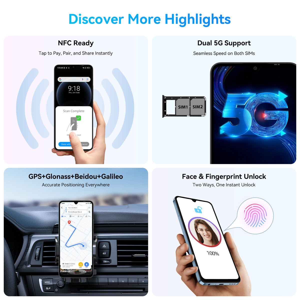 System Android 15 i system chłodzenia: Dzięki najnowszemu systemowi Android 15 i zaawansowanemu, wbudowanemu systemowi chłodzenia, telefon OSCAL TIGER 8 działa niezwykle płynnie, zachowując niską temperaturę nawet pod dużym obciążeniem. Zaawansowany, wbudowany system chłodzenia skutecznie odprowadza ciepło podczas intensywnego grania, wykonywania wielu zadań jednocześnie lub strumieniowania 5G. Ciesz się płynniejszą pracą i dłuższym czasem pracy baterii bez przegrzewania. Przełączaj się między kartami SIM, aby łatwo zarządzać danymi służbowymi i osobistymi. Odblokuj telefon w kilka sekund dzięki obsłudze rozpoznawania twarzy i odcisku palca.