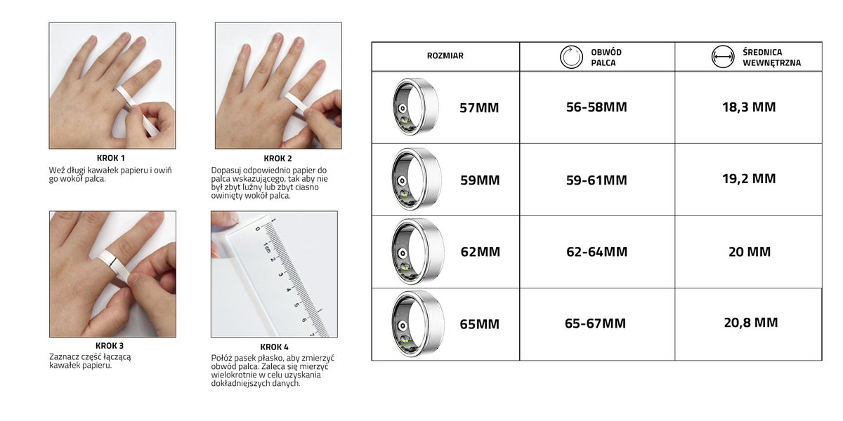Smart ring wykonany ze stali nierdzewnej charakteryzuje się wyjątkową trwałością oraz odpornością na korozję, co zapewnia długotrwałe użytkowanie. Elegancki wygląd tego materiału sprawia, że pierścień doskonale łączy nowoczesną technologię z klasycznym stylem.