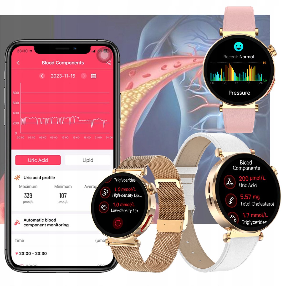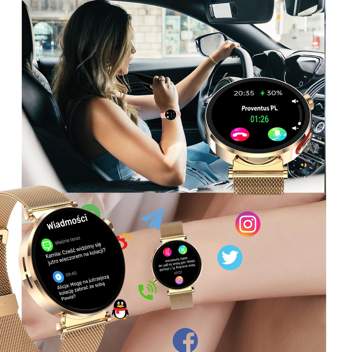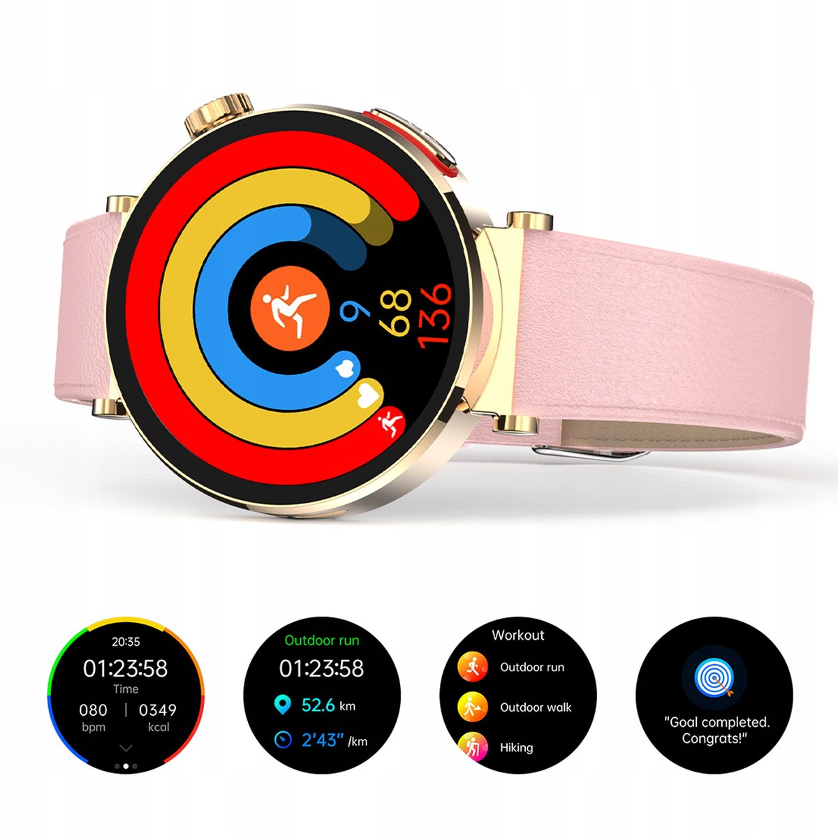 Ten wytworny smartwatch to idealny wybór dla każdej kobiety poszukującej akcesorium łączącego elegancję z praktycznością na co dzień. Jego przemyślany design sprawia, że doskonale komponuje się zarówno z formalnym strojem do pracy, jak i stanowi stylowy dodatek do wieczorowej kreacji. Uniwersalność tego zegarka sprawia, że bezproblemowo pasuje do każdej sytuacji i różnorodnych stylizacji.