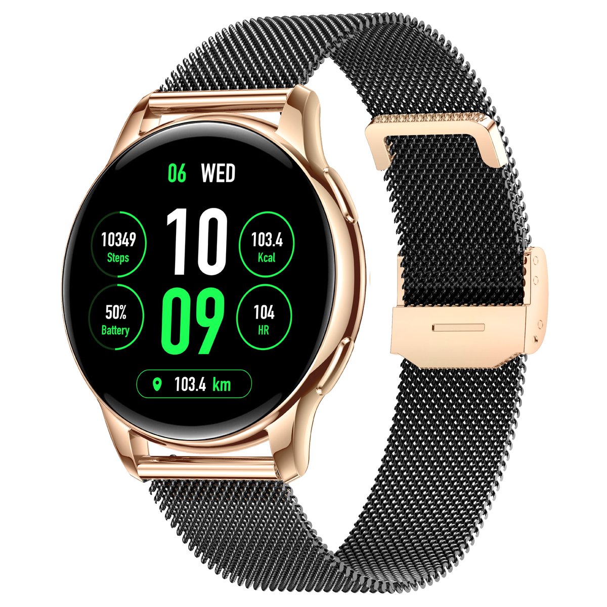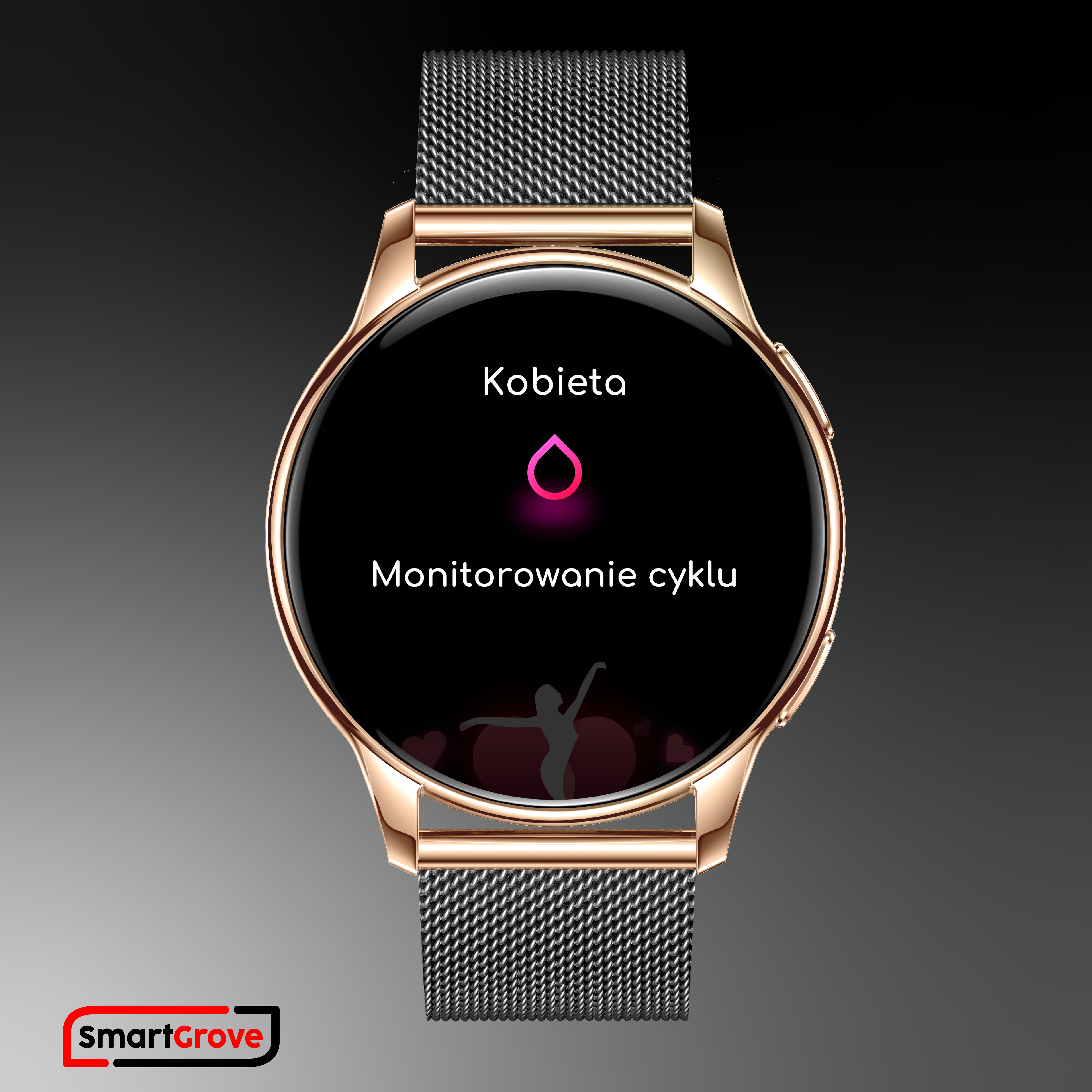 Po skonfigurowaniu aplikacji FitCloudPro na smartfonie z systemem Android, smartwatch umożliwia dostęp do różnnorodnych parametrów związanych ze zdrowiem kobiety.