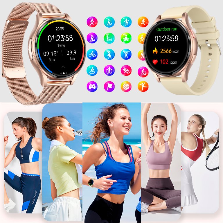Posiadając elegancki, czytelny ekran dotykowy, ten smartwatch oferuje łatwą obsługę oraz klarowny wyświetlacz, co sprawia, że jest nie tylko praktycznym, lecz również modnym dodatkiem. Użytkowniczki z pewnością docenią intuicyjny interfejs, umożliwiający szybki dostęp do kluczowych funkcji - od monitorowania aktywności fizycznej, po otrzymywanie powiadomień o połączeniach i wiadomościach, a także personalizację wyglądu tarczy zegarka.