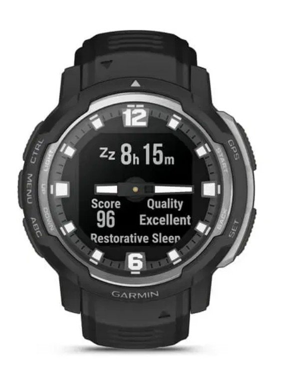Garmin Instinct Crossover Czarny to jedna z podstawowych odsłon najnowszej serii Instinctów z charakterystycznym dopiskiem Crossover. Ten reprezentant serii to hybrydowy smartwatch, który łączy w sobie mechaniczne wskazówki tradycyjnego zegarka z bogactwem funkcji smart, które wyróżniają współczesne zegarki multifunkcyjne z czołówki branży.