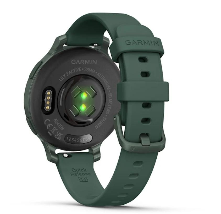 Smartwatch GARMIN Lily 2 Active Jasper Green 38mm 010-02891-02 z paskiem silikonowym w kolorze Jasper Green AKTYWNY I URZEKAJĄCY Z ukrytym wyświetlaczem i wzorzystą soczewką oraz podstawowymi ...