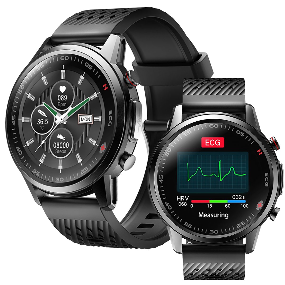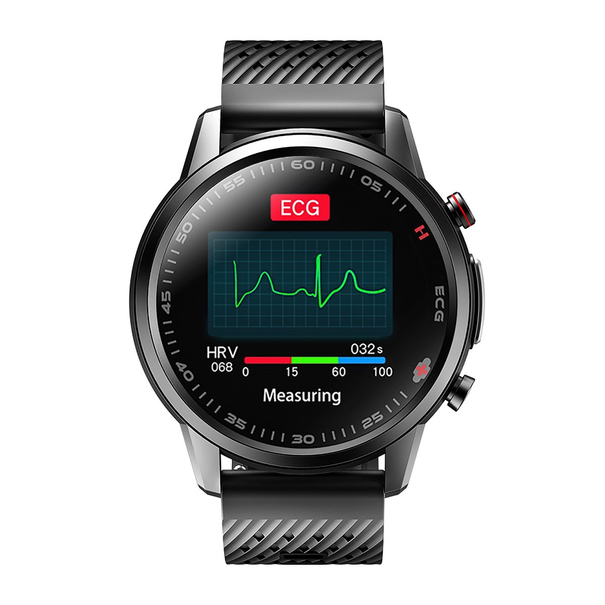 Smartwatch wyposażony w funkcję EKG umożliwia pomiar za pomocą specjalnego czujnika umieszczonego od wewnętrznej strony koperty zegarka oraz z boku urządzenia. Dzięki wykrywaniu impulsów elektrycznych przez sensory, smartwatch precyzyjnie analizuje pracę serca, a wyniki przedstawia na wykresie w dedykowanej aplikacji. To zaawansowane rozwiązanie pozwala użytkownikom monitorować swoje parametry kardiologiczne w wygodny sposób za pomocą zegarka, dostarczając istotnych informacji na temat pracy serca.