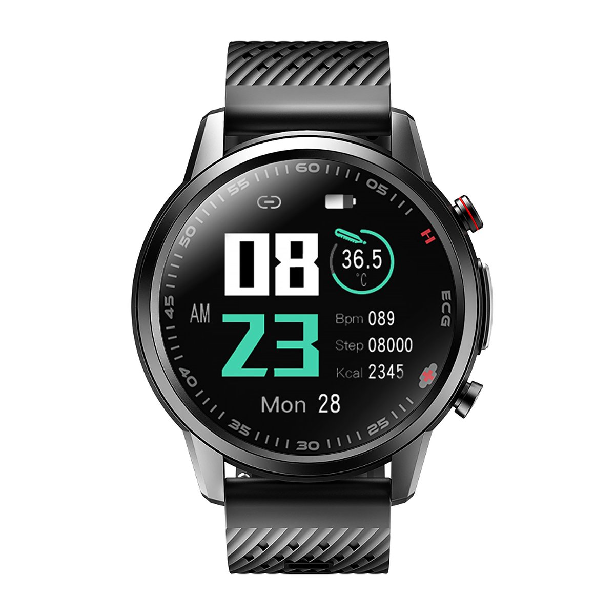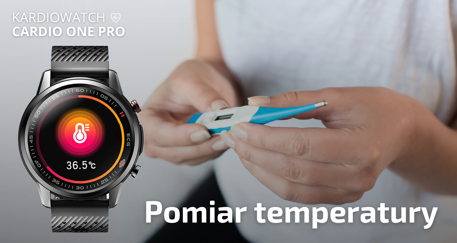 Smartwatch został wyposażony w czujniki monitorujące temperaturę ciała w wygodny sposób. Parametr ten można zmierzyć nosząc smartwatch na nadgarstku, przykładając go do czoła lub pod pachę. Wbudowany termometr dokonuje pomiarów poprzez kontakt ze skórą użytkownika, umożliwiając śledzenie zmian temperatury w czasie rzeczywistym. Gdy temperatura osiągnie ustawiony limit, smartwatch powiadomi użytkownika o tym, umożliwiając szybką reakcję. To kompleksowe rozwiązanie sprawia, że smartwatch Cardio One Pro jest praktycznym narzędziem do monitorowania temperatury i dbania o zdrowie.