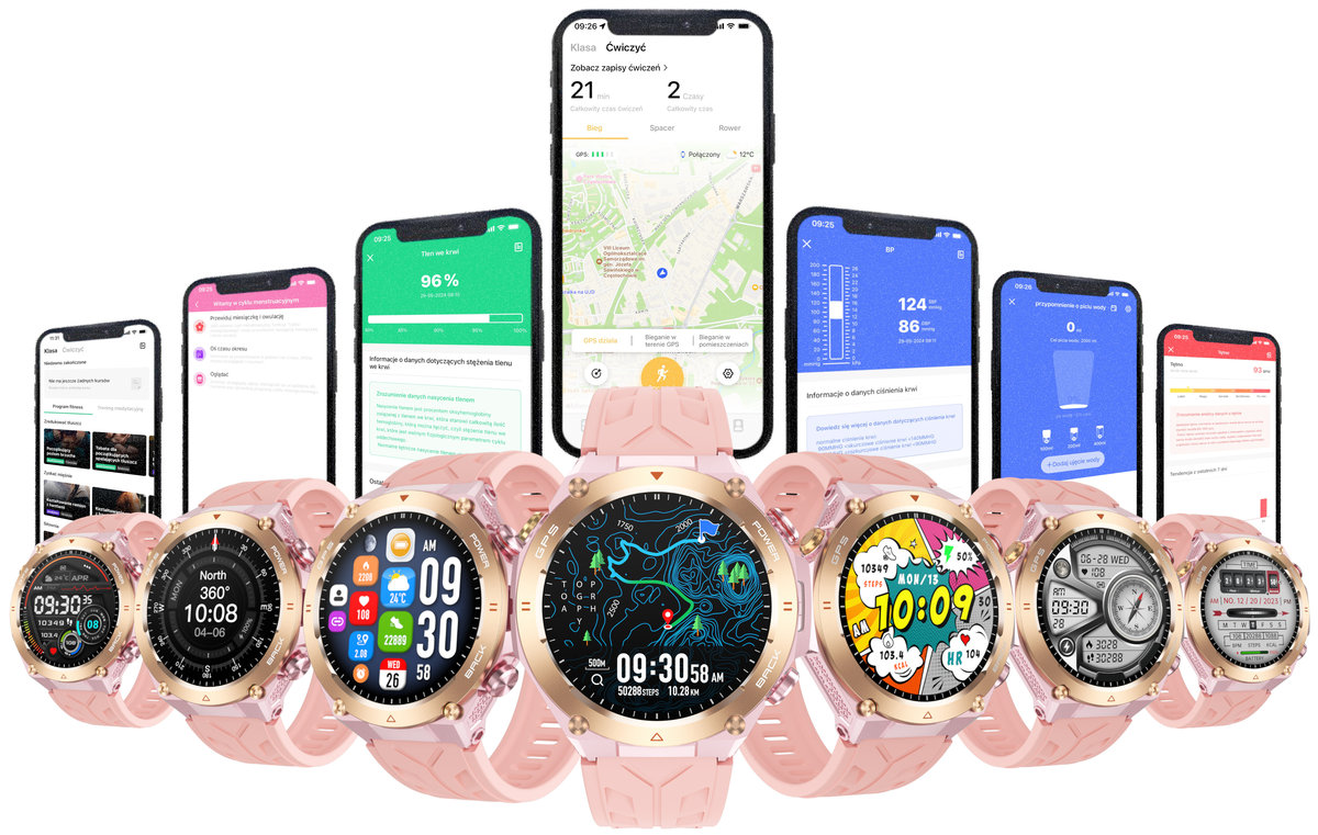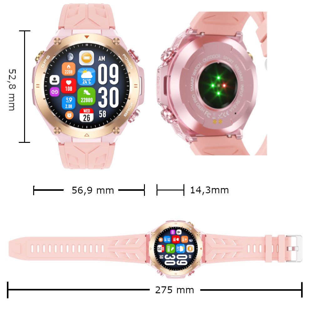 SMARTWATCH DAMSKI ZEGAREK FUNKCJA GPS ROZMOWY CIŚNIENIE 650mAh SMART WATCH Kolor różowy